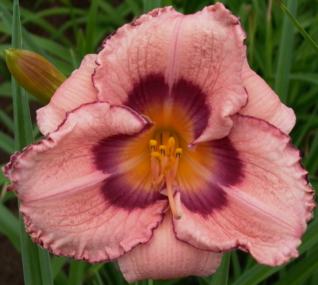 Light lavender purple, eyed and edged vibrant dark red wine