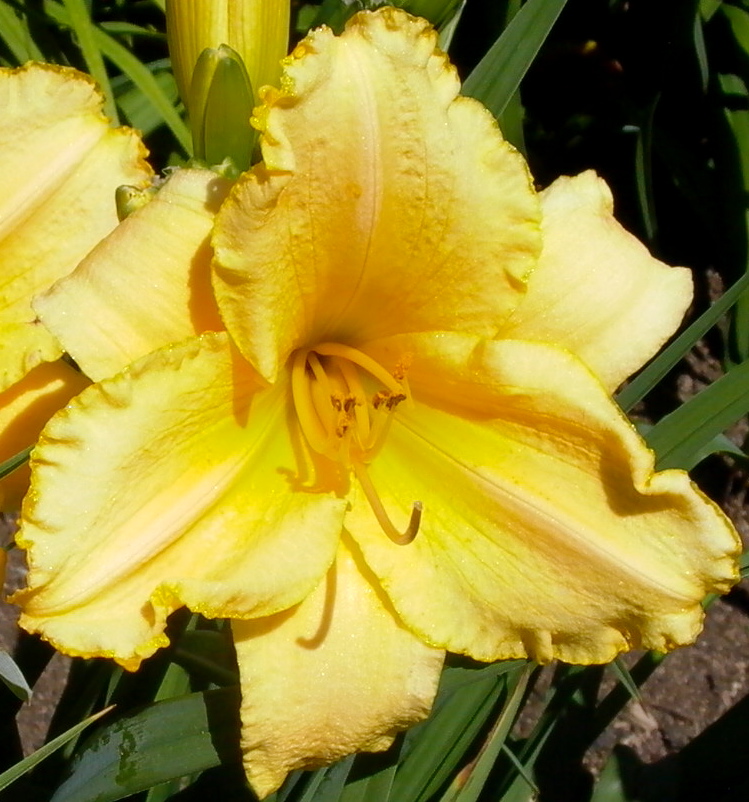 Yellow gold with light salmon pink overlay in cooler weather, opens well, green throat, very nice plant
