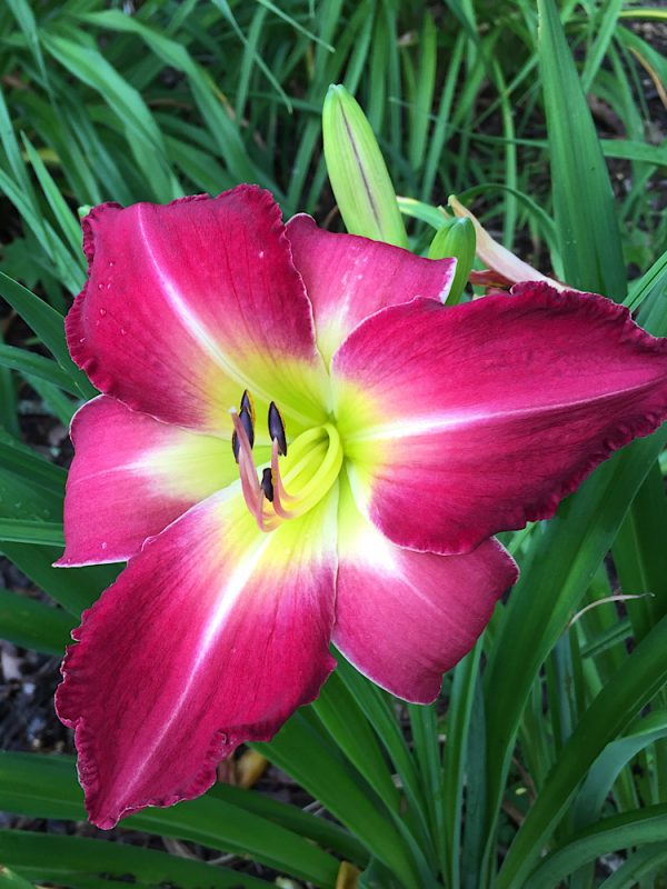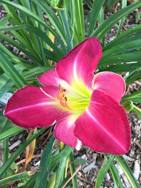 Distinctive bright rich deep cherry pink accented by white mid ribs